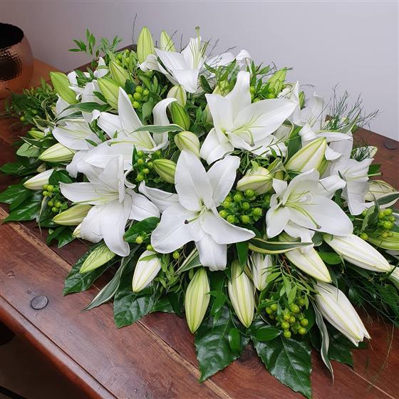 Natural White Lily Casket Spray